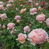 Princesse Charlene de Monaco® (‘Meidysouk’) produces fully double blooms in soft shades of light apricot and shell pink, paired with a rich, sweet fragrance highlighted by fresh fruit notes. Growing into an upright, bushy plant about 5–5½ feet tall and 2–3 feet wide, this elegant hybrid tea rose offers excellent disease resistance and beautifully formed flowers that are well suited for cutting and garden display.